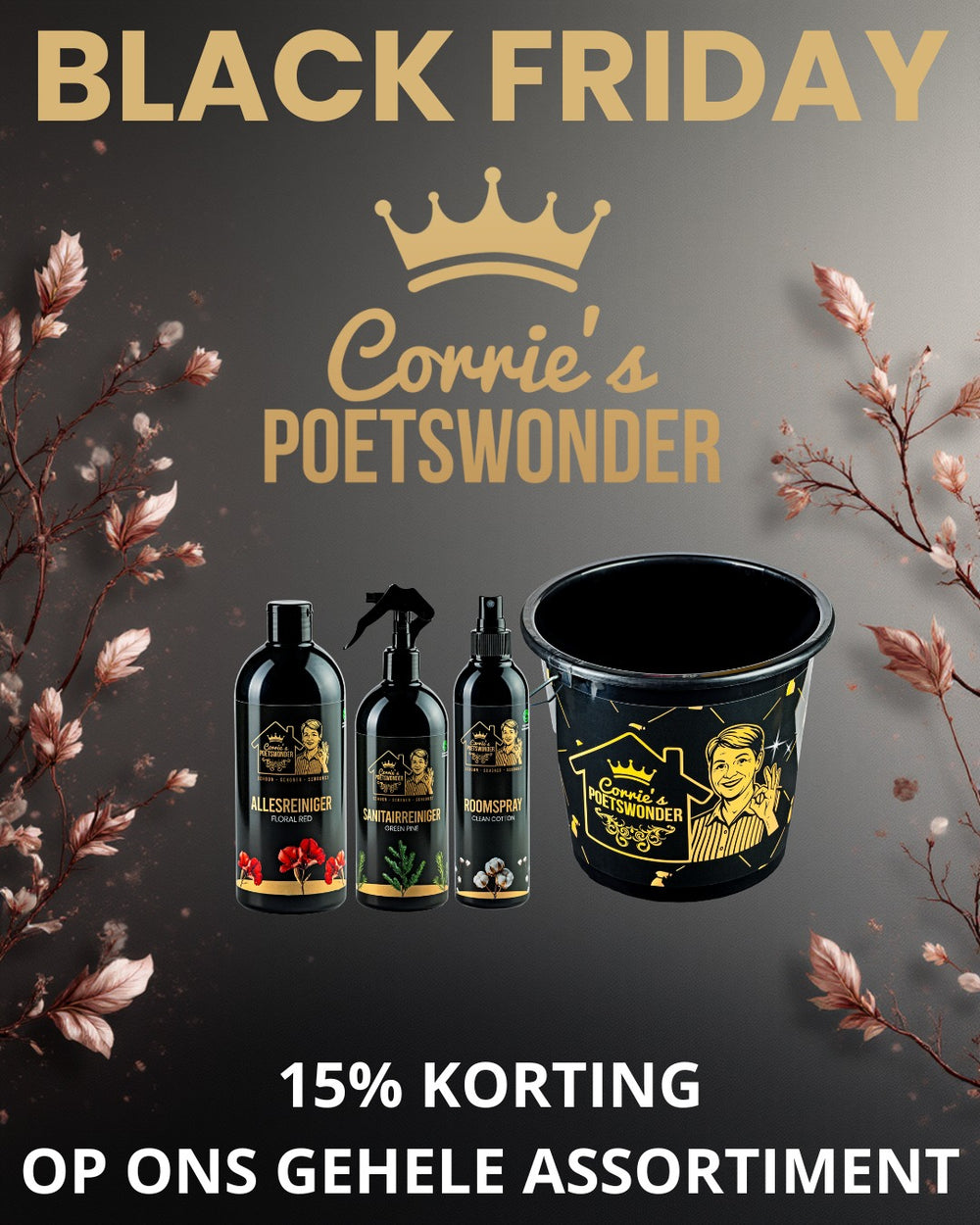 Bij Corrie's Poetswonder draait alles om écht schoonmaken – met plezier én met zorg voor het milieu. Corrie groeide op met de overtuiging dat een schoon huis belangrijk is, en ontdekte later dat dit ook zonder schadelijke stoffen kan. Daarom vind je bij ons alleen effectieve schoonmaakmiddelen die biologisch afbreekbaar zijn en verpakt zijn in gerecycled materiaal.