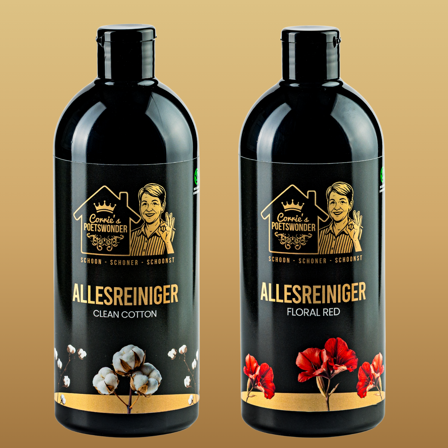 - 🧴 Allesreiniger (500 ml) – Voor dagelijkse reiniging van alle oppervlakken. Fris, effectief en streeploos.